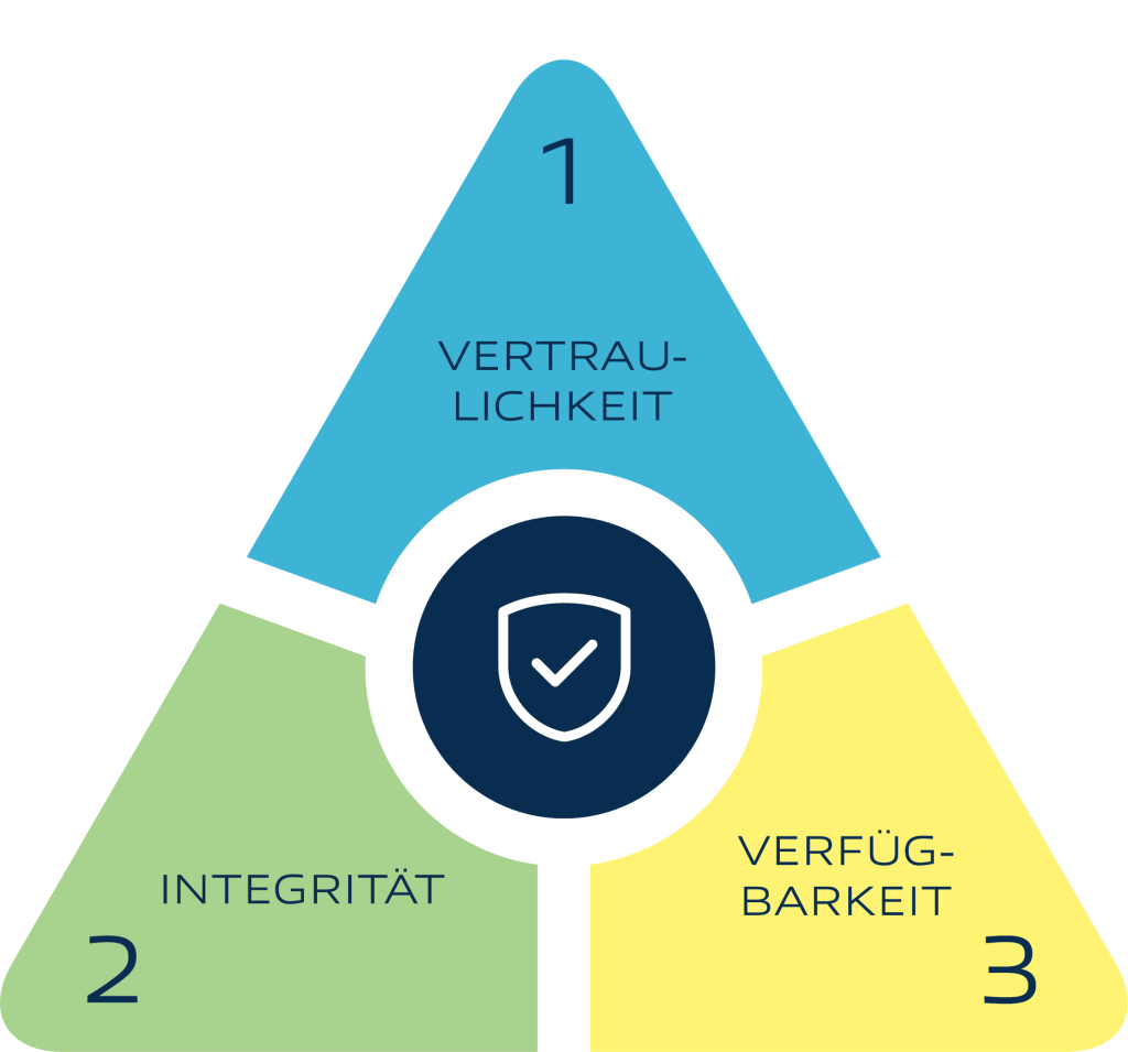 Informationssicherheit bedeutet, Unternehmenswerte – insbesondere Informationen, unabhängig von ihrer Form (digital oder physisch) – wirksam vor unbefugtem Zugriff, Veränderung, Verlust oder Zerstörung zu schützen. Im Mittelpunkt stehen die drei Schutzziele Vertraulichkeit, Integrität und Verfügbarkeit